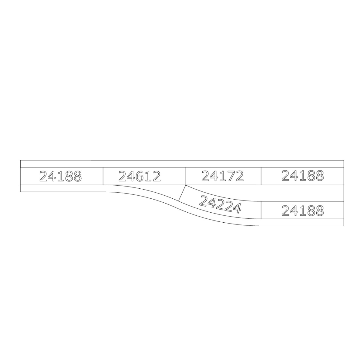 Diese Abzweigung ist passend für 1x Weiche, 3x24188, 1x24224 und 1x24172